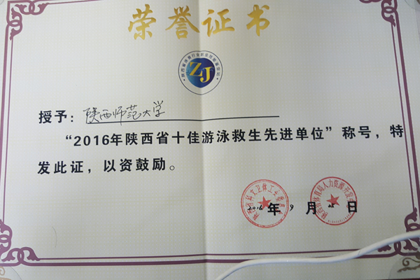 公司共选派8名员工参加游泳救生技能比赛,他们在为期两天的比赛中奋力拼搏,展示出良好的技能水平,最终在全部5项的比赛中成绩优秀,取得团体第一的好成绩。并被陕西省科文卫体工会委员会授予“2016年陕西省十佳游泳救生先进单位。”