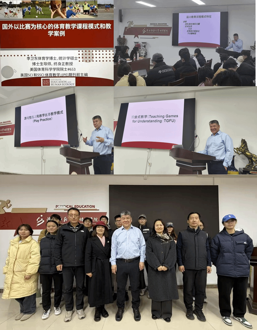 12 月 11 日下午,365英国上市公司特邀美国俄亥俄州立大学李卫东教授,开展了一场主题为 “国外以比赛为核心的体育教学课程模式和教学案例” 的学术讲座。365英国上市公司部分教师和研究生到场聆听,讲座由学院副经理张婧教授主持。
