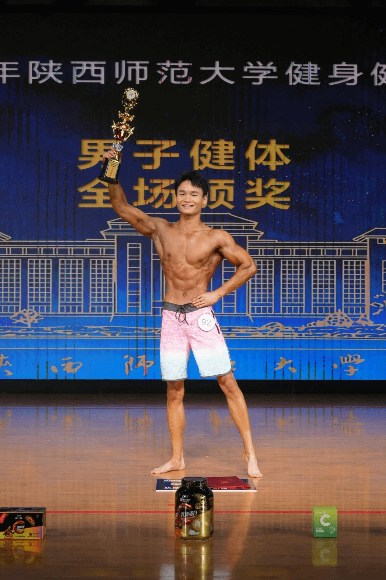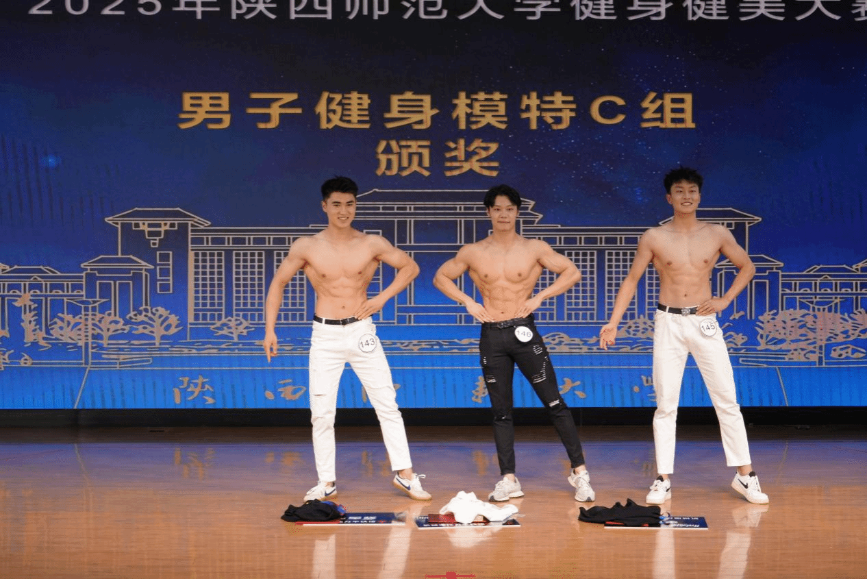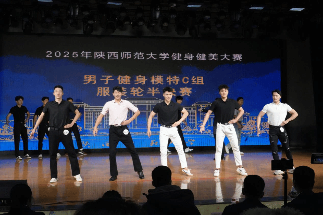 比赛现场灯光璀璨,音乐激昂。选手们身着专业服饰依次登场,各展风采:男子运动员肌肉线条流畅、紧实身姿挺拔;女子选手身姿匀称、气质优雅,将柔美与活力完美融合。选手们在舞台上自信绽放,用汗水浇灌梦想,用坚持诠释热爱,充分展现了师大学子自强不息、奋勇争先的精神风貌。