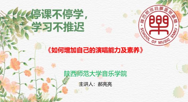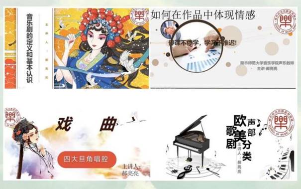 采用“超星”教学平台进行一对多模式授课,主要是给员工讲一些有关于中西方声乐的理论基础知识,如:《学院派唱法的特点》《声部的分类》《如何在作品中体现情感》《如何增强演唱技巧及素养》《什么是歌剧、音乐剧》《戏曲唱腔分析》《中国民歌特点》。